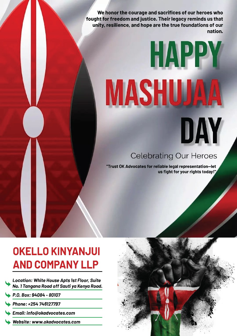 Location: White House Apts 1st Floor, Suite No. 1 Tangana Road off Sauti ya Kenya Road | | P.O. Box: 94084 - 80107 Phone: +254 746127797 | | Email: info@okadvocates.com