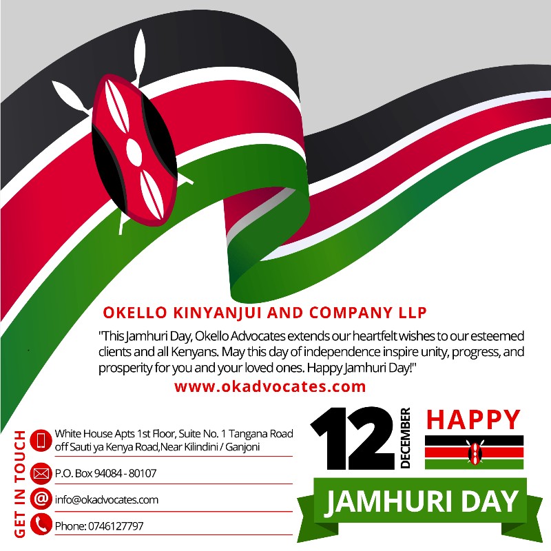 As we come together to celebrate Jamhuri Day, Okello Kinyanjui and Company LLP takes this opportunity to wish our valued clients and partners a joyous and meaningful day. This occasion reminds us of the strength, resilience, and unity that have shaped our nation’s journey to independence. We are proud to be part of a community that continues to champion the values of freedom, equality, and justice for all. Your trust and support inspire us to uphold these principles in everything we do.